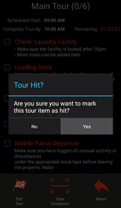 If the Checkpoint is a "virtual" Checkpoint that does not require a physical scan you will see a Tour Hit? confirmation box. Select "Yes".